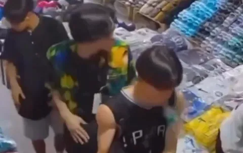 SNSで拡散されている映像では、Tシャツや帽子・サンダルなどが並んだ土産店の売り場で、カラフルな半袖シャツを着た少年3人が商品を見て回っています。